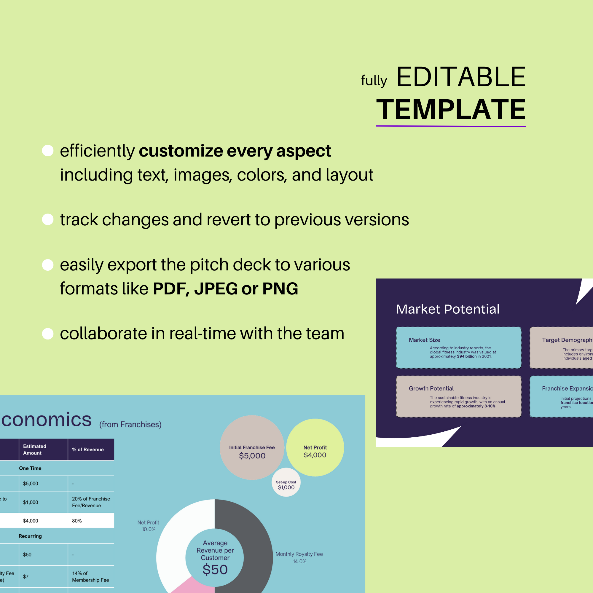 Tailored Pitch Deck: Make a memorable impression with a pitch deck template customized specifically for service-based businesses operating on the franchise model, strategically highlighting your brand's unique value proposition and growth potential.
