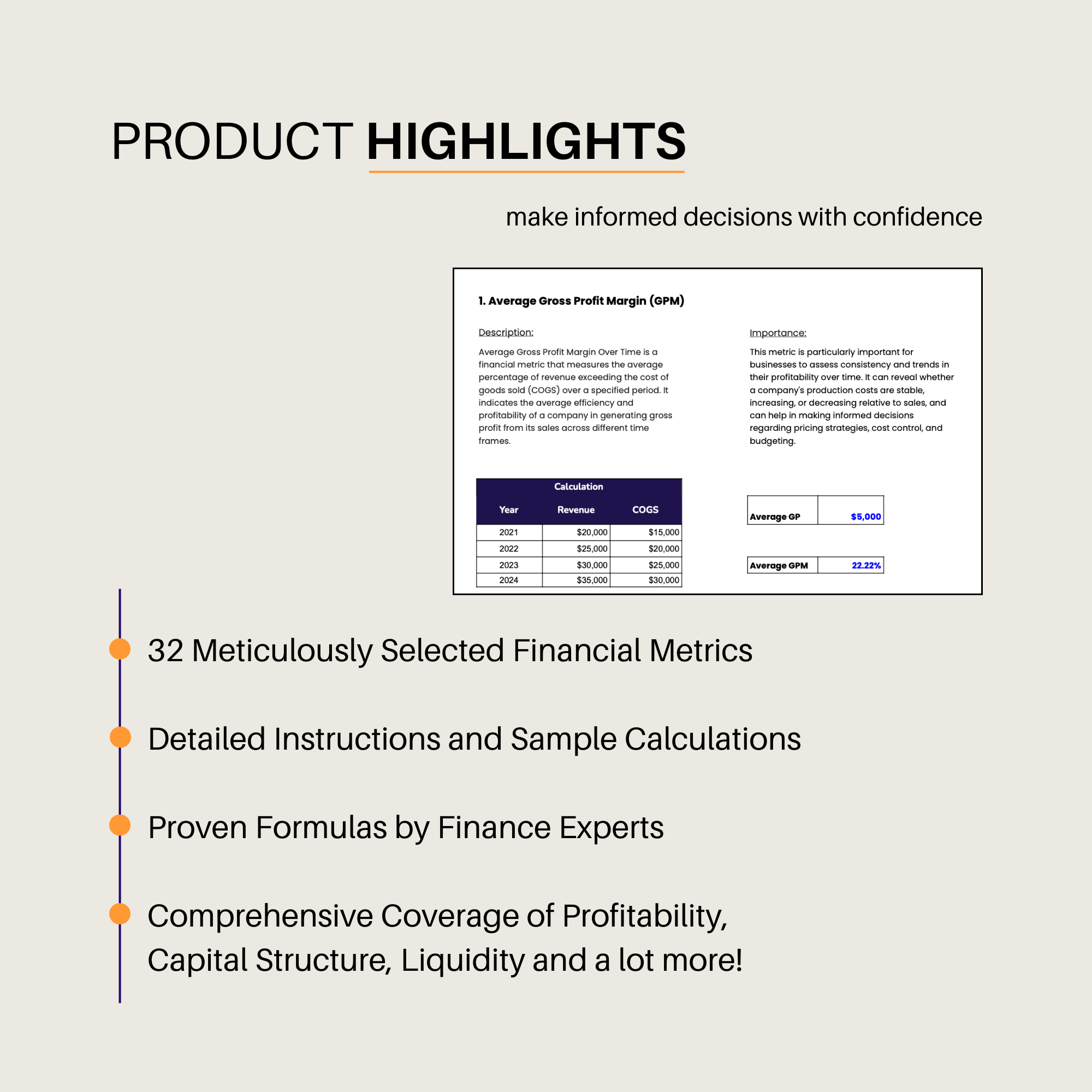 Expert Guidance: Each metric comes with detailed instructions and sample calculations, ensuring you understand not only how to use the metric but also its significance within your financial strategy.